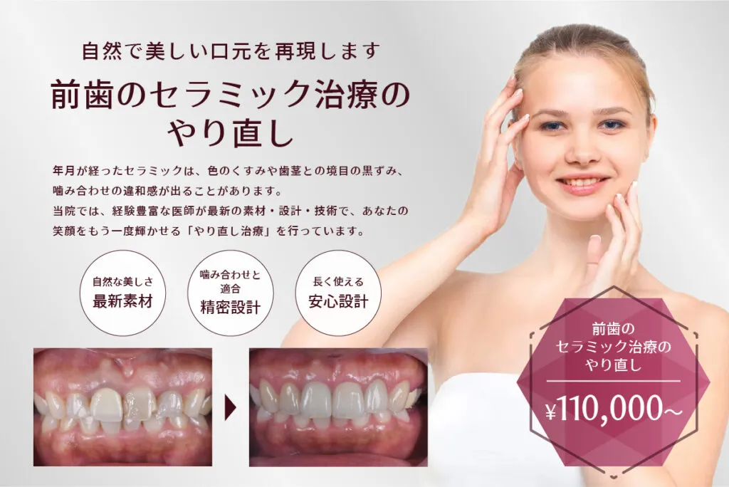 セラミックの再治療は、単なる「やり直し」ではなく、より美しく・より機能的に・より長く使える口元をつくる機会です。