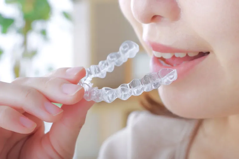 透明で薄いため目立ちにくく、装着中も自然な見た目のマウスピース矯正治療です。インビザライン Go矯正は奥の歯を除く計20本を対象とした矯正装置で、最短5カ月での矯正が可能です